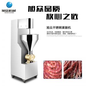 旭眾牌SZ-200灌腸機使用敞開式不銹鋼料斗,適用于連續(xù)添加物料;與灌裝手接觸部件全部采用優(yōu)質不銹鋼制作以防生銹;該機自動化程度高,技術先進、性能穩(wěn)定、操作簡便、工作效率高,具有不破壞物料成份,保質、保鮮等特點。
