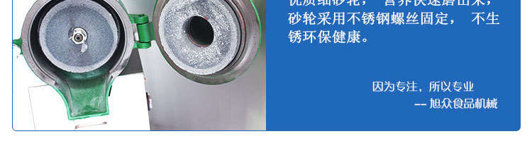 旭眾牌SZ-12/15/20不銹鋼磨漿機(jī)結(jié)構(gòu)合理,造型美觀,操作簡(jiǎn)便。具有體積小、重量輕、噪音低、省力,性能穩(wěn)定、質(zhì)量可靠、容易清洗、移動(dòng)方便等優(yōu)點(diǎn),適用于豆制品廠、飲食服務(wù)業(yè)、食堂、飯店及個(gè)體商戶使用。