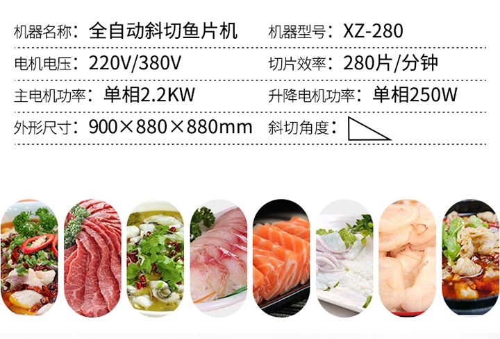 本機(jī)外形美觀、操作簡(jiǎn)單、效率高、耗電小、清潔保養(yǎng)容易、安全衛(wèi)生、切肉效果好等優(yōu)點(diǎn),切鮮魚機(jī)器其造型美觀、結(jié)構(gòu)緊湊、堅(jiān)固耐用,切魚片機(jī)器價(jià)格實(shí)惠是賓館、酒家、食堂、肉類加工場(chǎng)等單位所不可缺少的肉類加工機(jī)械。