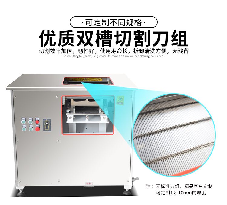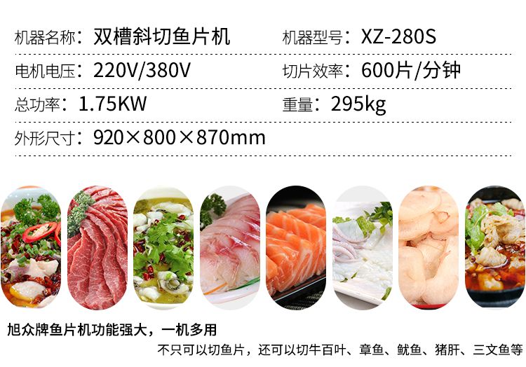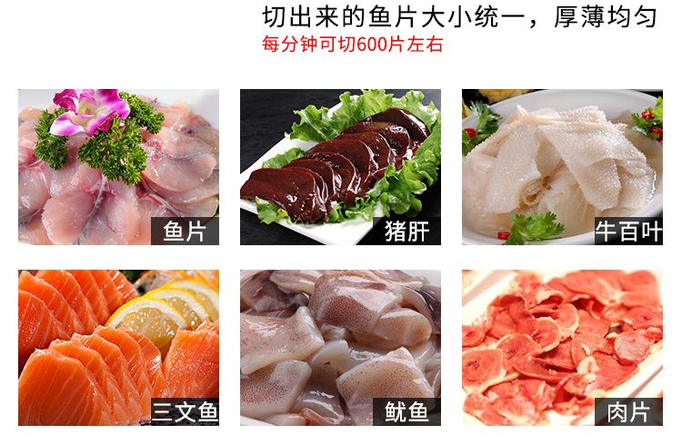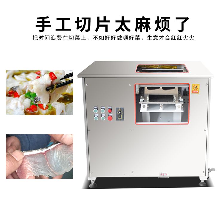 本機外形美觀、操作簡單、效率高、耗電小、清潔保養(yǎng)容易、安全衛(wèi)生、切肉效果好等優(yōu)點,切鮮魚機器其造型美觀、結構緊湊、堅固耐用,切魚片機器價格實惠是賓館、酒家、食堂、肉類加工場等單位所不可缺少的肉類加工機械