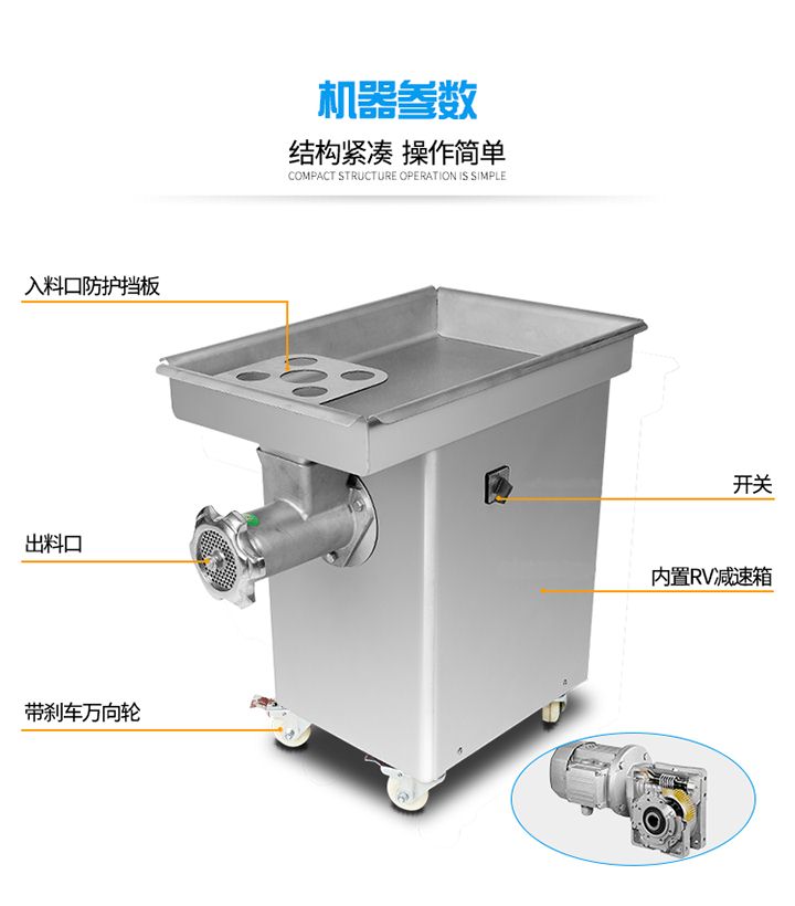 XZL-32A單絞機吸取同行之優(yōu)點,改進新型絞肉切肉機械,它能切豬肉、羊肉、牛肉、魚及其它各種肉類、所切肉片厚度適中切片效率高,是餐廳、賓館、酒樓、單位食堂等絞肉切肉的理想機械,該機外形獨特,操作方便,維修簡單,工作效率高,在同行業(yè)中處領(lǐng)先地位,與食物接觸部分均采用不銹鋼制造符合食品衛(wèi)生標準。