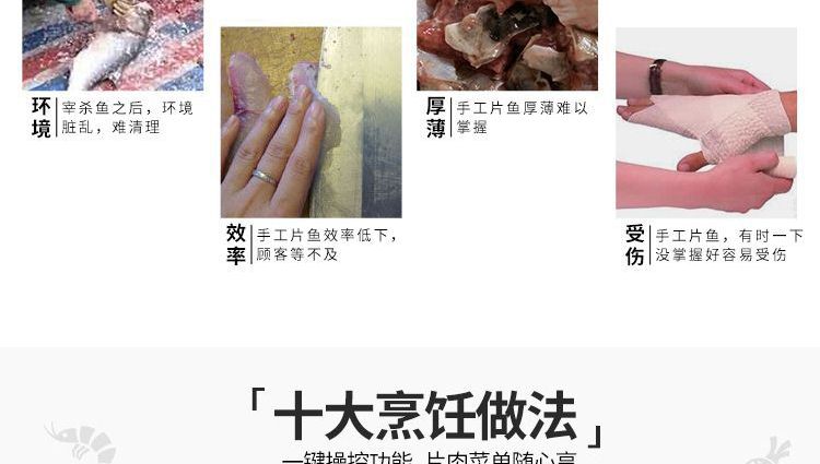 ?本機(jī)采用優(yōu)質(zhì)不銹鋼托魚(yú)板,衛(wèi)生干凈,刀片采用進(jìn)口材料;